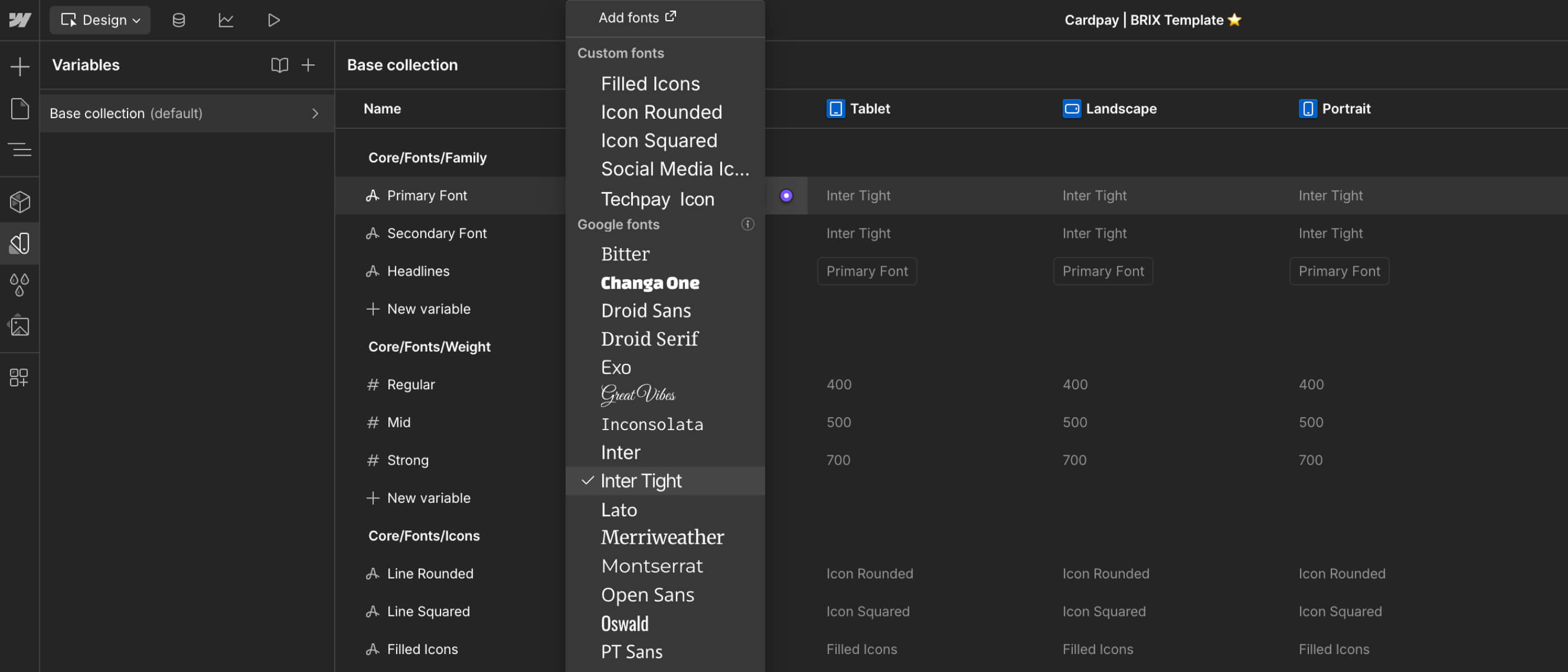 In case you need a custom or premium font that is not available on Webflow, you can always go to Project Settings > Fonts and you will be able to upload custom fonts, or connect your Adobe Fonts account.